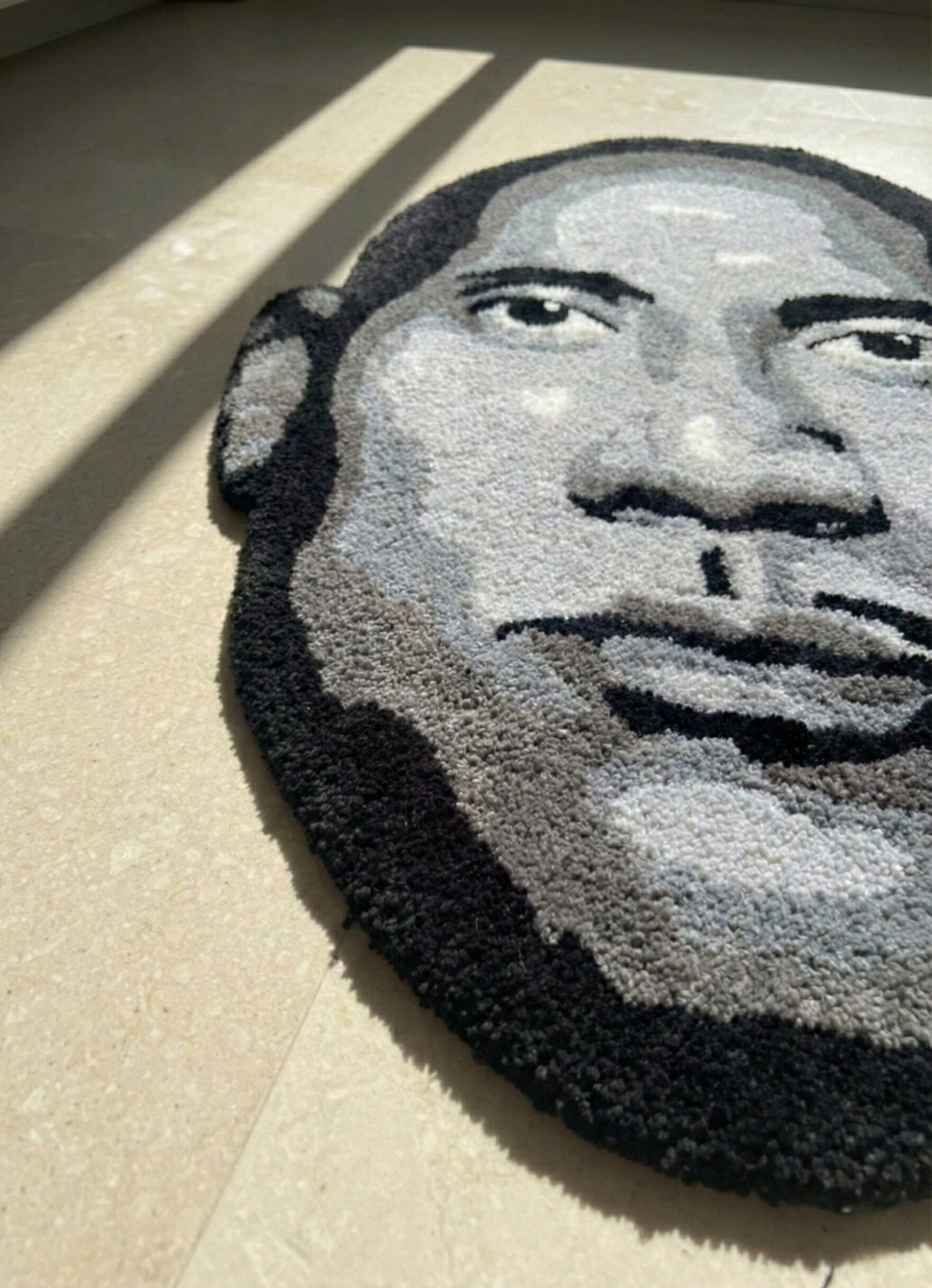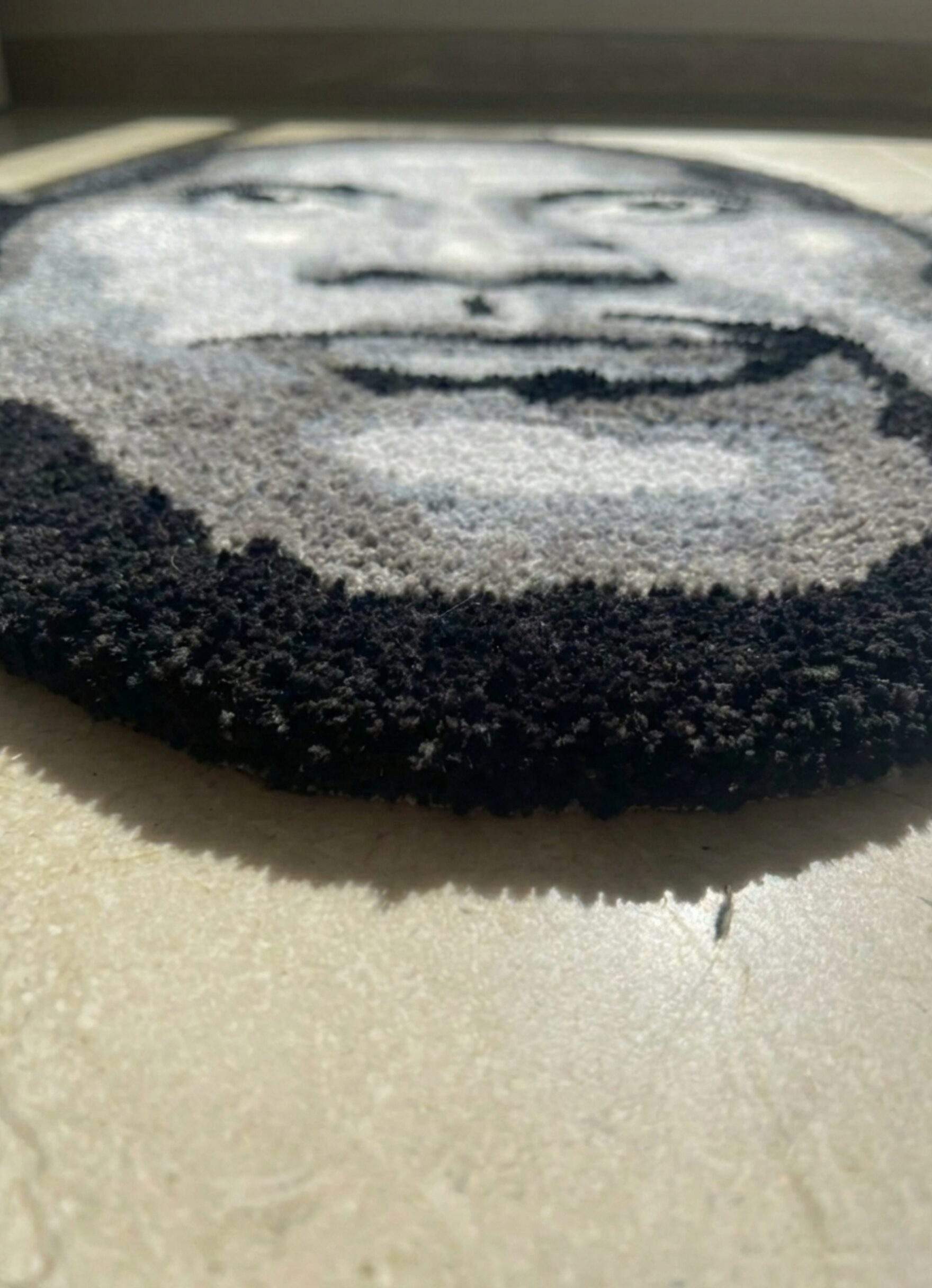 Handmade with 100% acrylic yarn. one of one tufted art, with non slip backing.