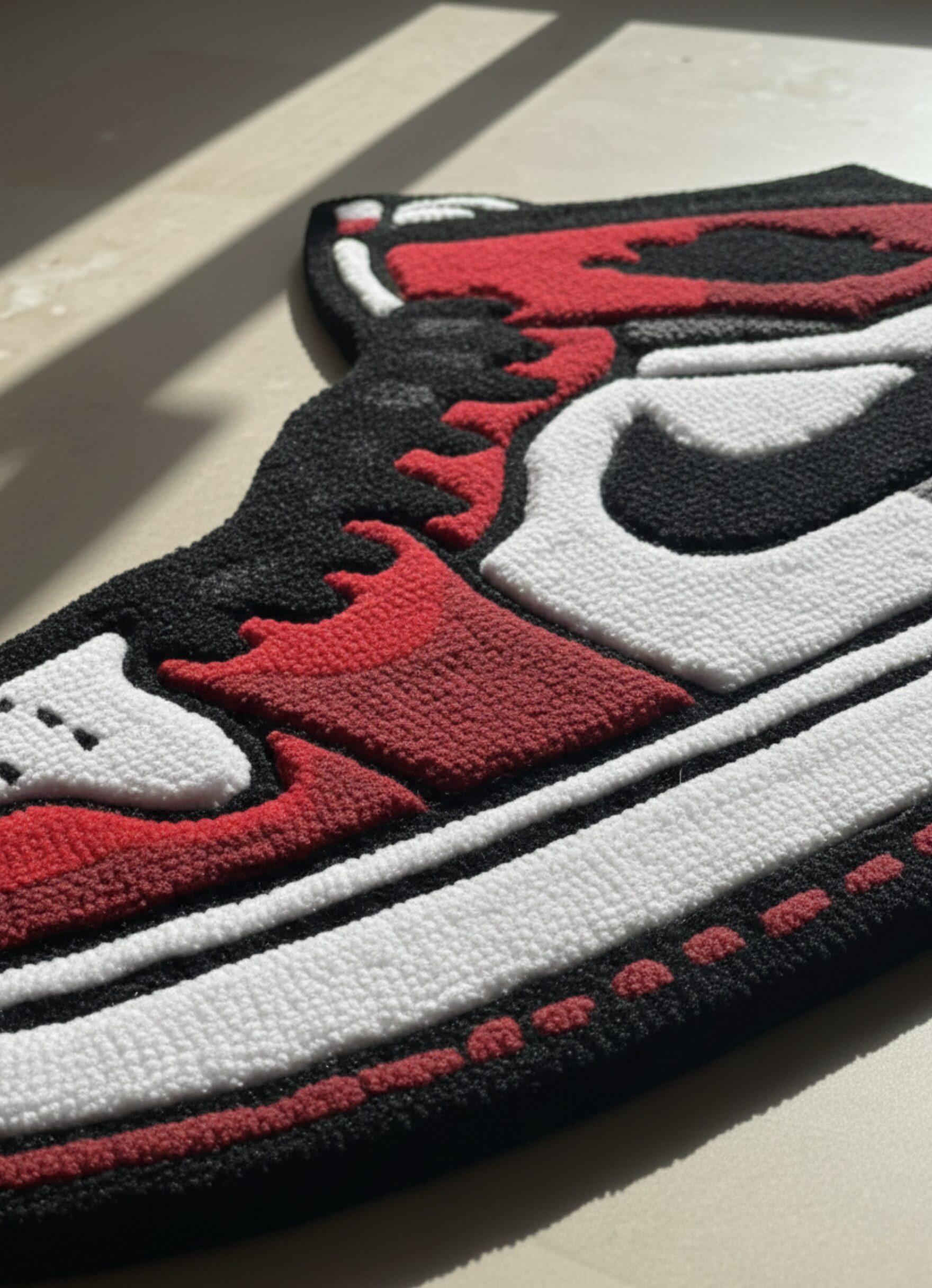 Handmade with 100% acrylic yarn. one of one tufted art, with non slip backing.