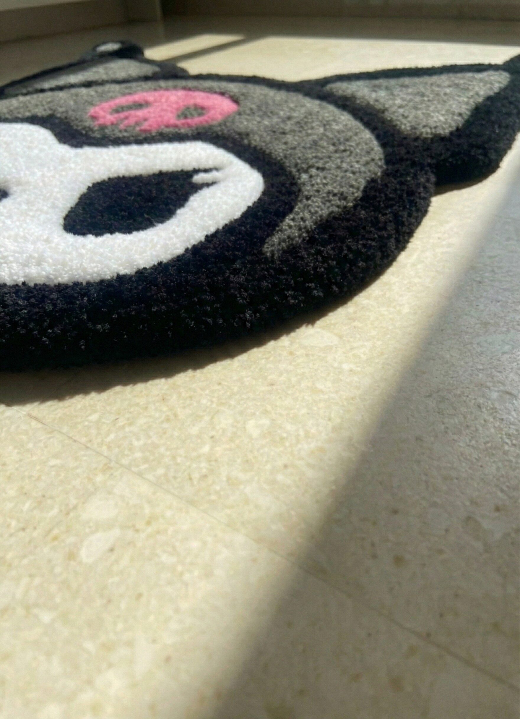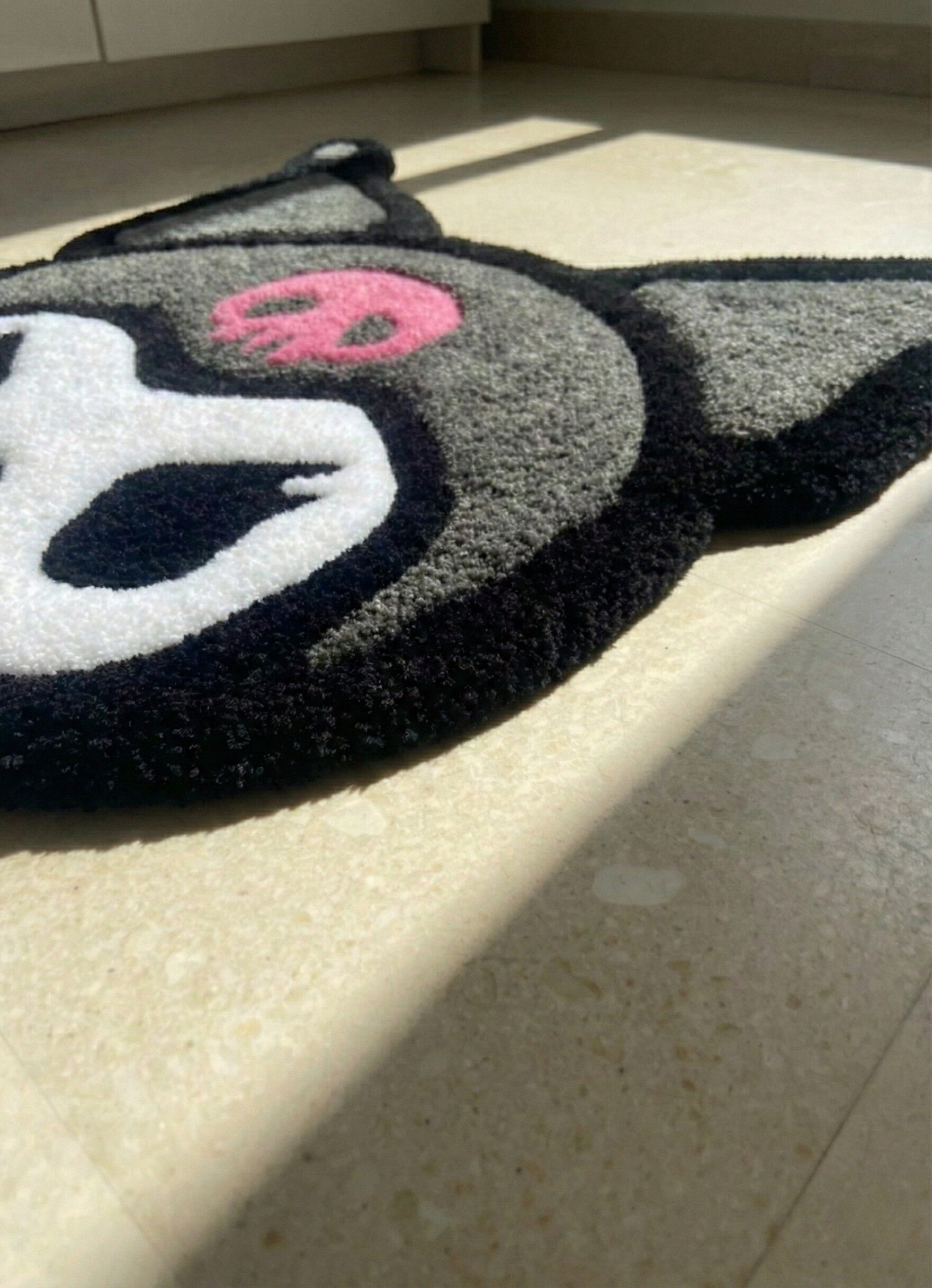A stylish tufted rug featuring Kuromi, perfect for adding a touch of edgy-cute charm to any space—great for Sanrio fans!
