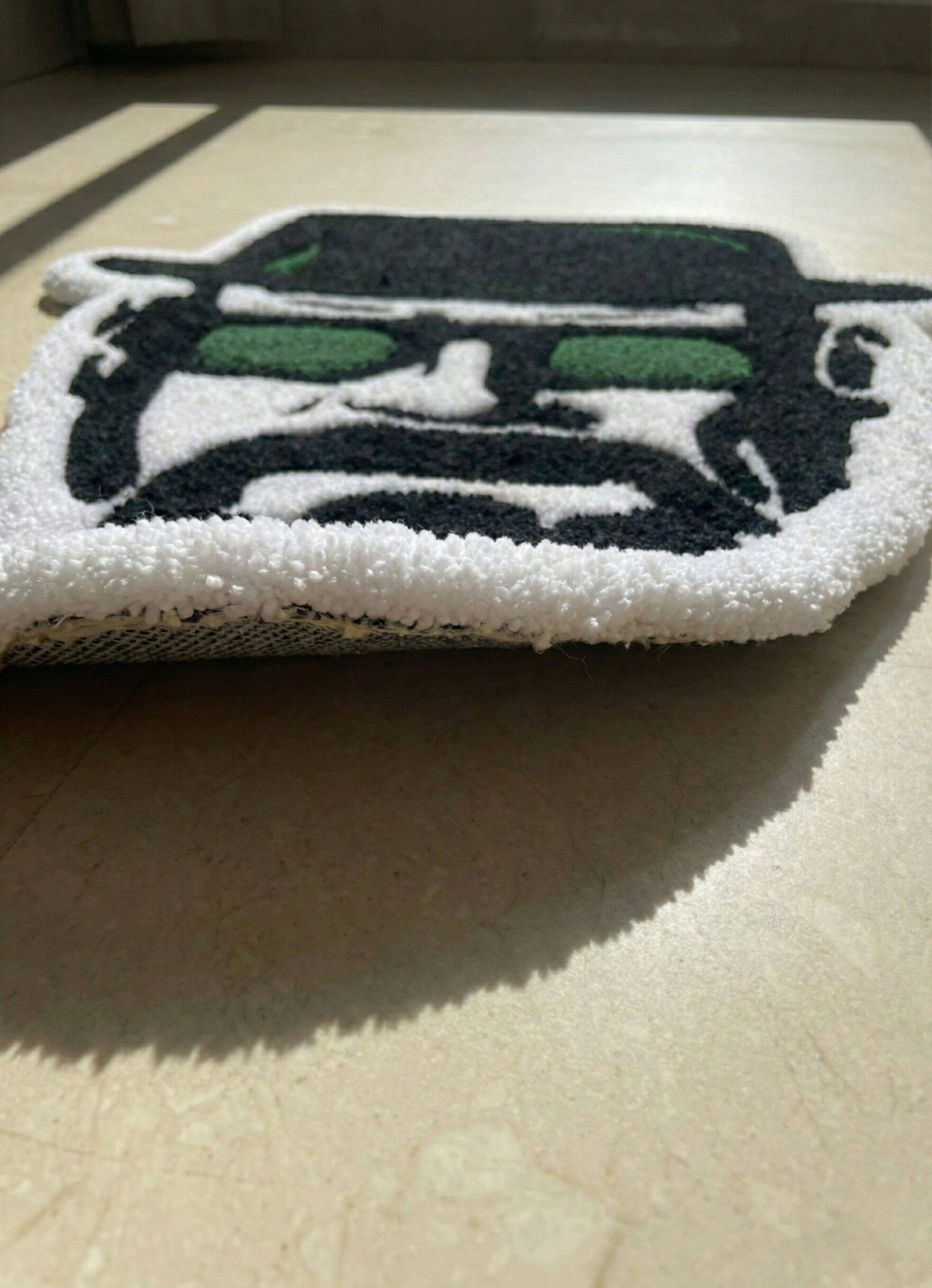 Handmade with 100% acrylic yarn. one of one tufted art, with non slip backing.